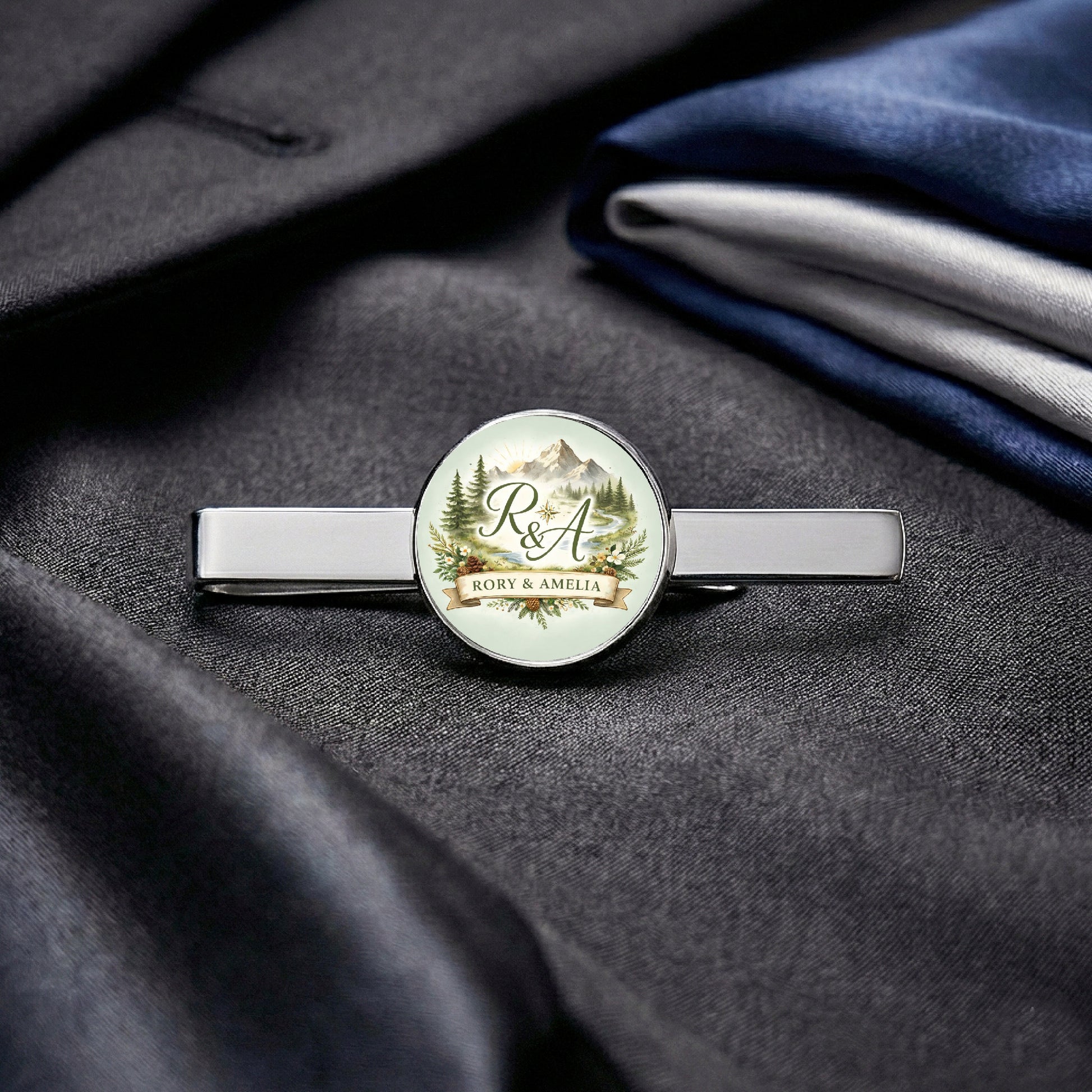 Personalised Wedding Logo Tie Clip • Groom & Groomsmen Gift • Custom Couple Logo Design