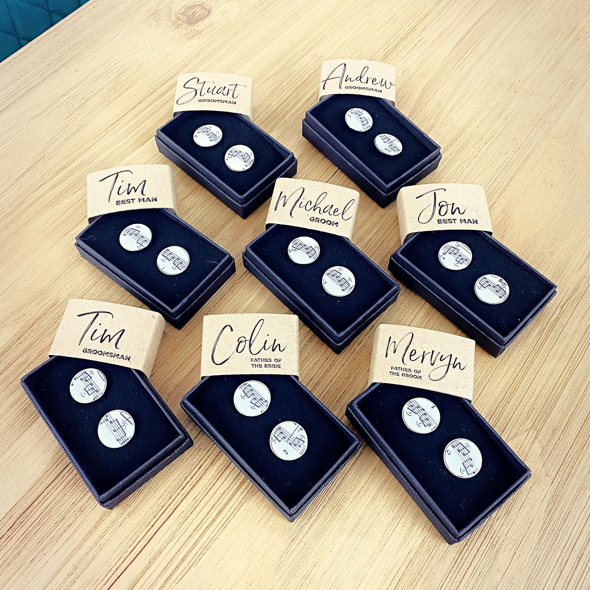 These cufflinks are a subtle yet deeply personal way to honour a shared passion for music on your big day.